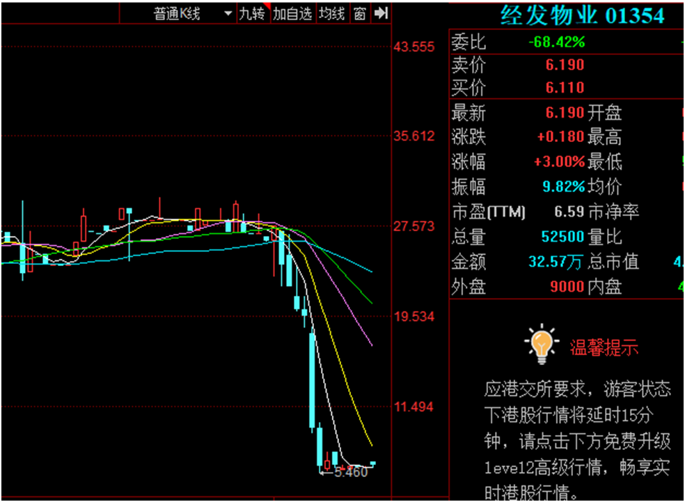 今年以来在二级市场走势比较稳健的经发物业,股价在6月中旬出现了断崖式下跌。